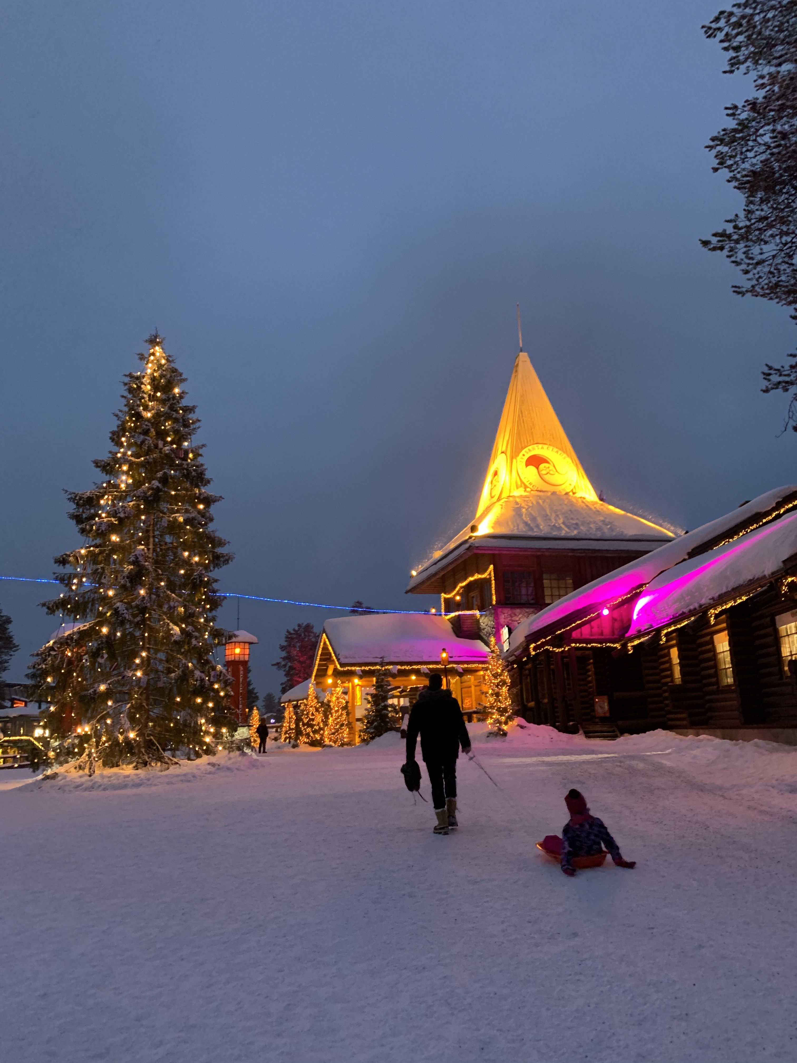 Nous sommes retournés le soir au Village du Père Noel pour le voir illuminé avant de repartir pour la France de lendemain, c’était vraiment génial!