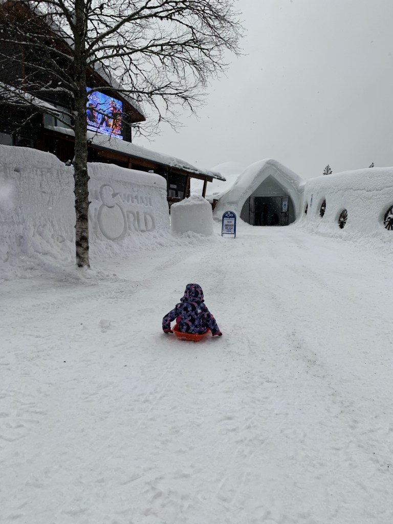 Devant chaque hôtel et beaucoup de magasins des luges attendent les enfants sur le trottoir, c’est super pratique pour se balader en famille! J’entends déjà le sauna privé de l’hôtel qui m’appelle aussi, ça sera mon petit moment de détente du soir après chaque journée de découverte! D’ailleurs en Laponie finlandaise, il y a autant de saunas que de logements et il y a plus de rennes que d’habitants!!!